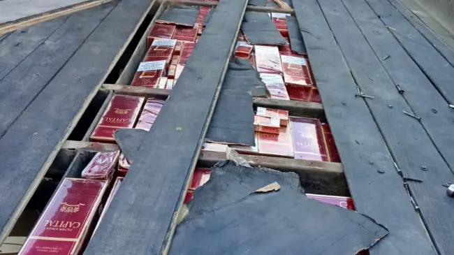 Decomisan 78 mil cigarrillos ocultos bajo piso falso de un camión en Santiago Rodríguez
