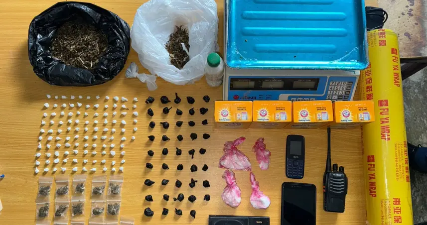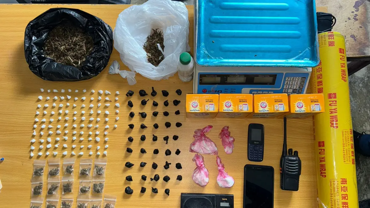 De igual manera, las autoridades incautaron, ciento seis porciones de un material rocoso presumiblemente crack (31.6 gramos),una porción grande de material rocoso presumiblemente crack (38.1 gramos), cuarenta y cuatro porciones de un vegetal verde presumiblemente marihuana (27.1 gramos), dieciséis porciones de un vegetal verde presumiblemente marihuana (18.0 gramos), una porción grande de vegetal verde presumiblemente marihuana (81.5 gramos), una porción de vegetal verde presumiblemente marihuana (23 gramos), cuatrocientas pastillas de origen desconocido, una balanza negra marca Tanita, un peso digital blanco y azul marca W BENO, Un rollo de papel plástico de empaque, cuatro libras de Baking Soda, Un radio de comunicación portátil marca eSYNiC, dos teléfonos celulares.