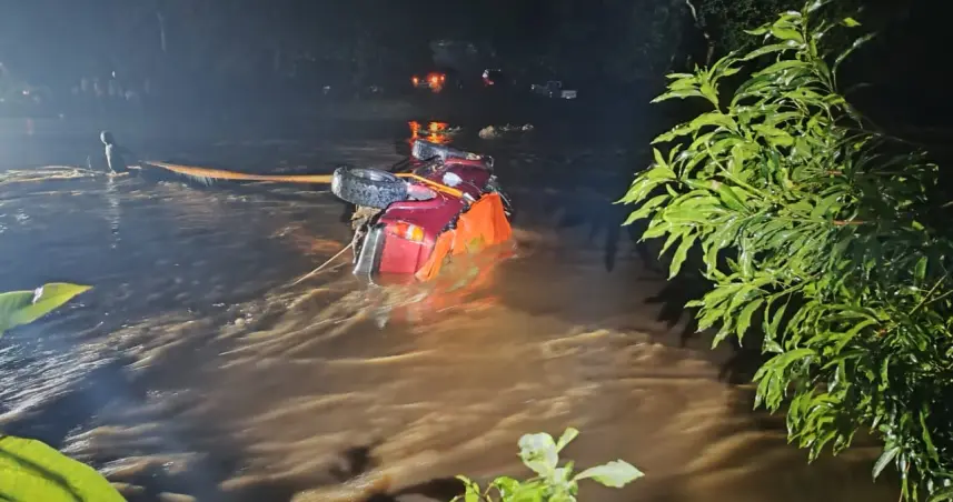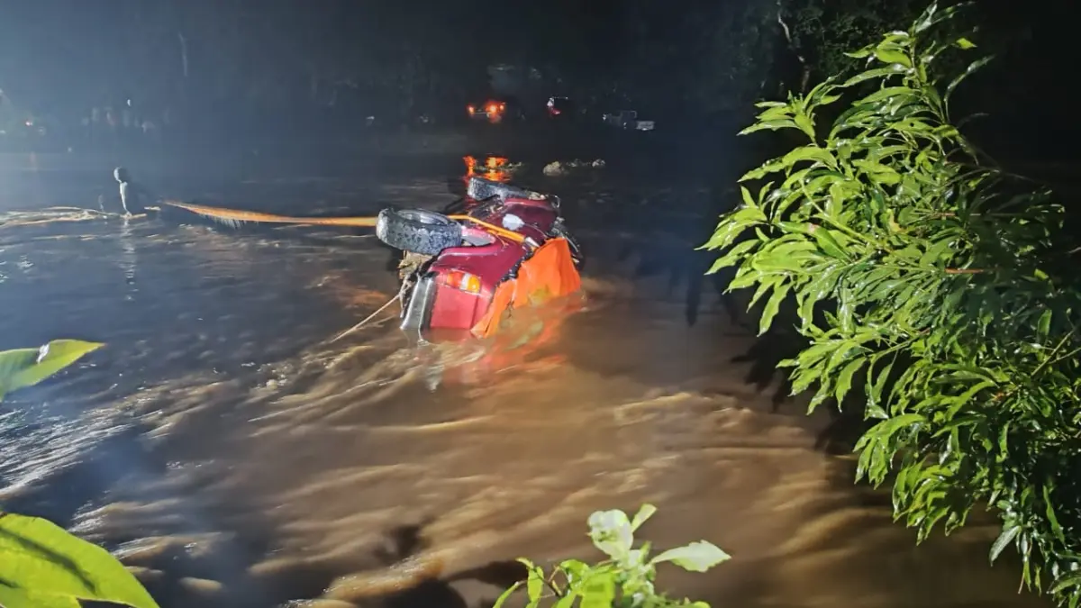 Defensa Civil recupera vehículo arrastrado por el río Guanuma en Mamá Tingó, Yamasá