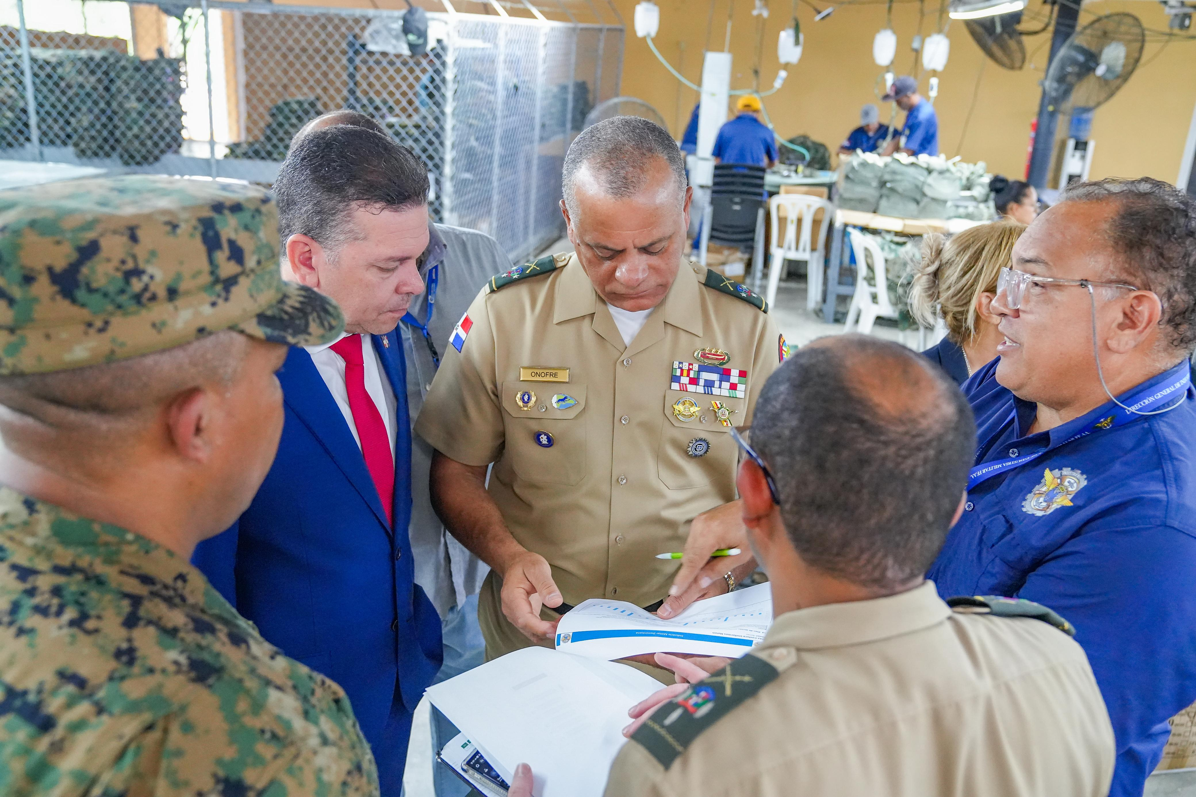 Bonao–.– Bonao.– El ministro de Defensa, teniente general Carlos Antonio Fernández Onofre, ERD., realizó una visita de supervisión a la planta textil de la Industria Militar Dominicana, ubicada en el municipio de Bonao, con el objetivo de constatar los avances en el proceso de ampliación y automatización de esta importante instalación.