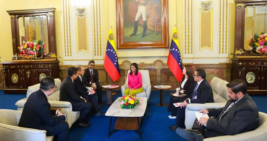 Delcy Rodríguez recibe en Caracas a una delegación de petrolera estatal de Indonesia