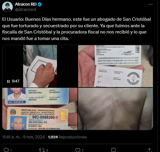 Esta denuncia fue dada a conocer en la cuenta de X que lleva por nombre "AtracosRD".