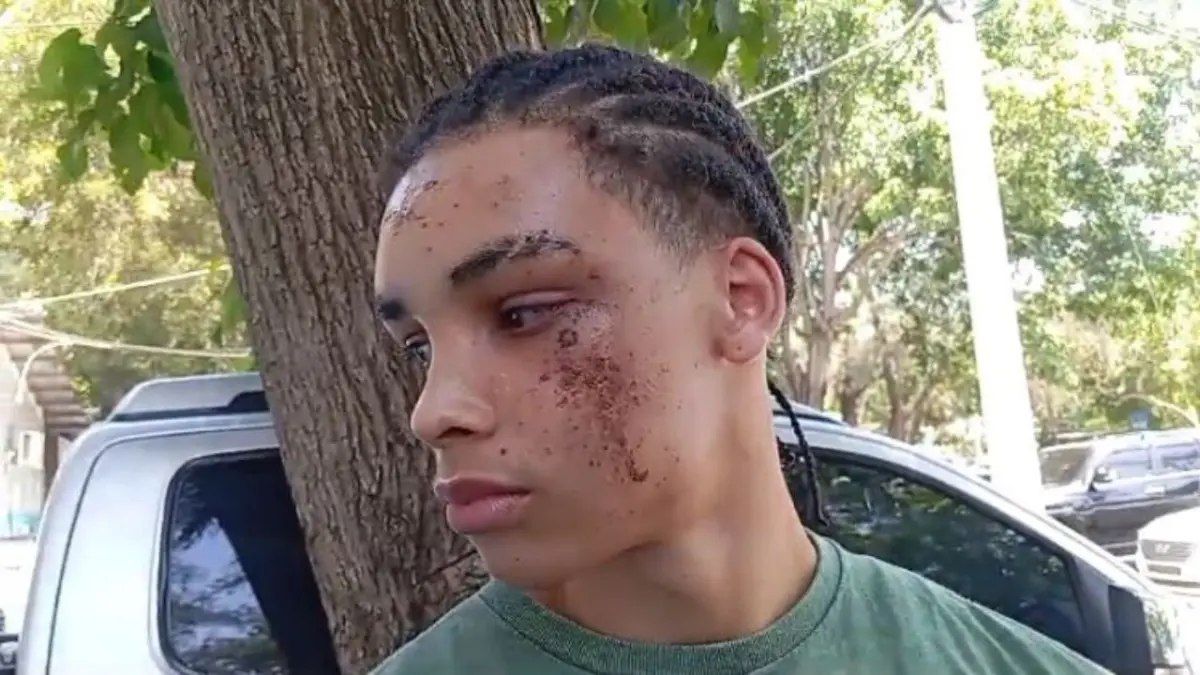 Collado, de 19 años, narró que fue golpeado y maltratado salvajemente por los miembros de la uniformada, que lo mandaron a detener y que le realizaron disparos al vehículo y uno le rozó en la frente.