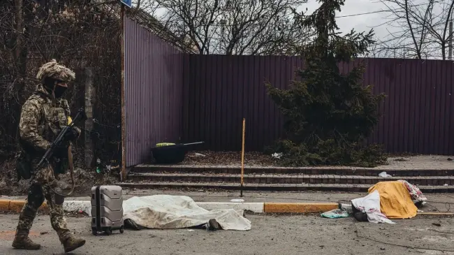 Tras la retirada de las fuerzas rusas de los suburbios del norte de Kiev, los medios ucranianos han informado del hallazgo de decenas de cuerpos sin vida maniatados, abandonados en las calles, en lo que parecen haber sido ejecuciones sumarias.
