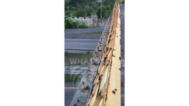 Comunitarios piden a las autoridades pertinentes solucionar la problemática, ya que temen la barra de hierro pueda caer a algún vehículo que este transitando por el lugar.