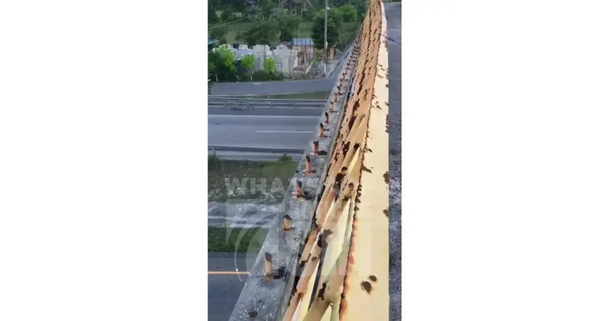 SANTO DOMINGO.- Denuncian baranda del puente peatonal de la carretera Romana San Pedro se encuentra en malas condiciones con todos los soportes rotos.