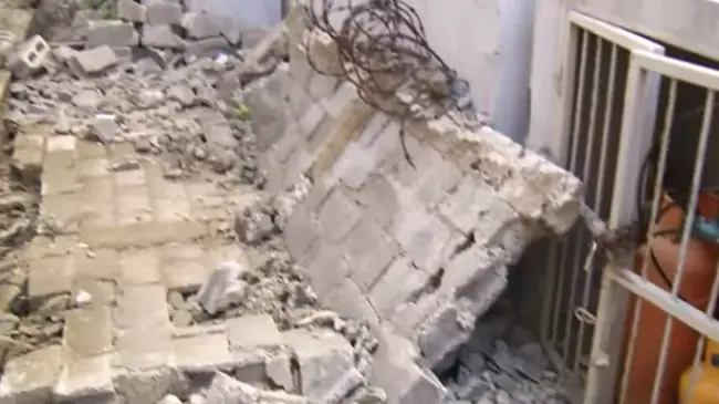 Los residentes, atribuyen el desplome de ambas paredes a vicios de construcción por parte de la constructora que edificó la obra.