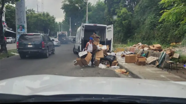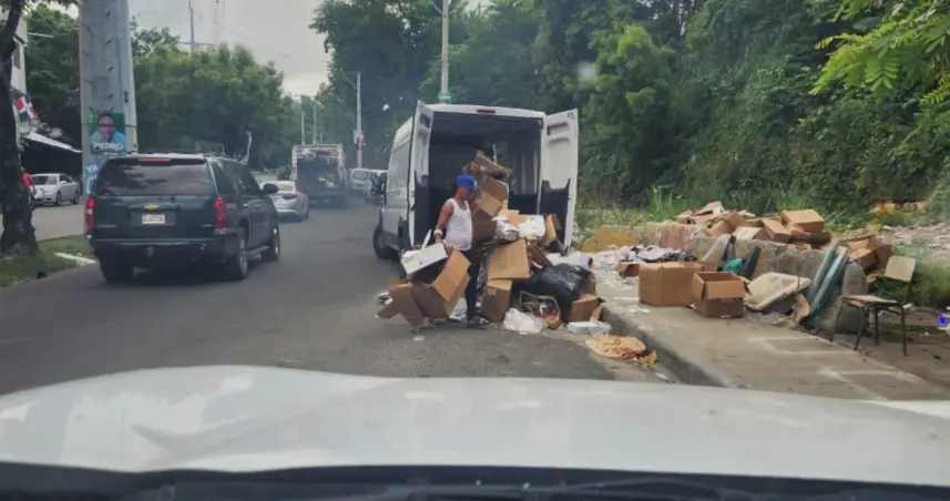 Santo Domingo.– Santo Domingo.- Desaprensivos fueron sorprendidos arrojando desechos sólidos en la avenida de los Reyes Católicos de Arroyo Hondo, justo al lado del antiguo zoológico y en la calle Higüey, 27 de Febrero.