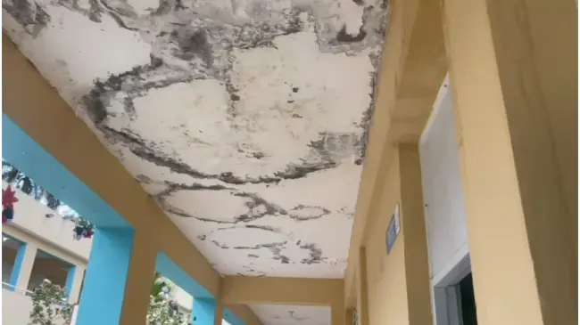 San Francisco de Macorís - Entre grietas y filtraciones imparten docencia en el centro educativo Maximina Tavárez de la comunidad Los Arroyos, así lo denunciaron profesores de la unidad de base de la Asociación Dominicana de Profesores (ADP).