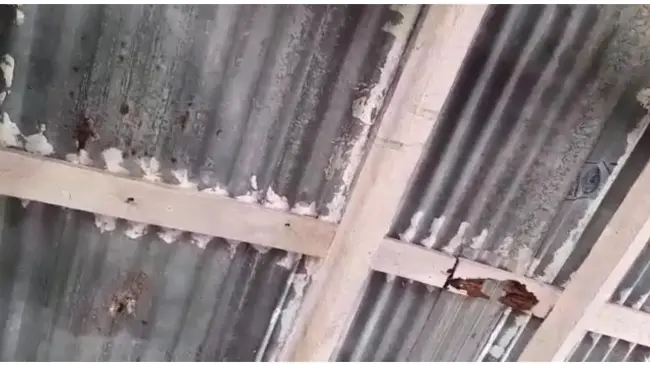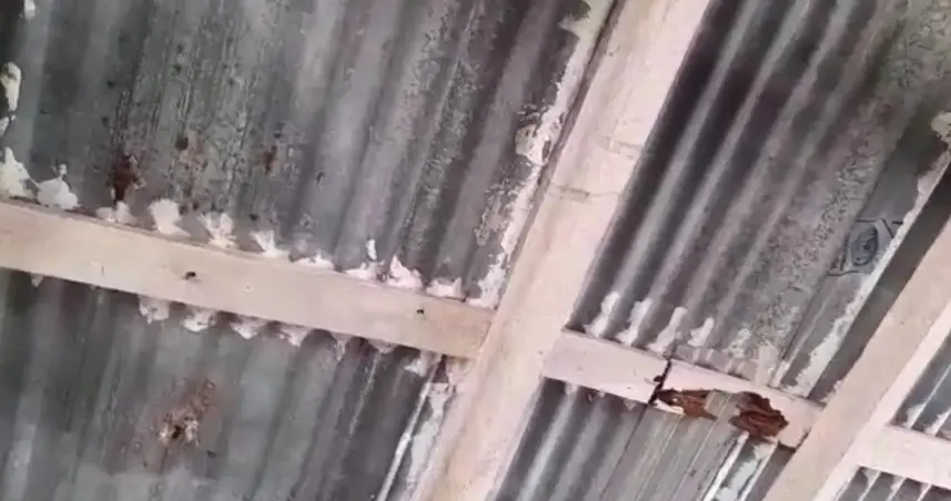 A pesar de las frases de bienvenida a los niños pegadas en las paredes de la escuela, esta se encuentra vacía, sin maestros y sin estudiantes y algunas maderas que soportan el techo de zinc deben ser cambiadas.