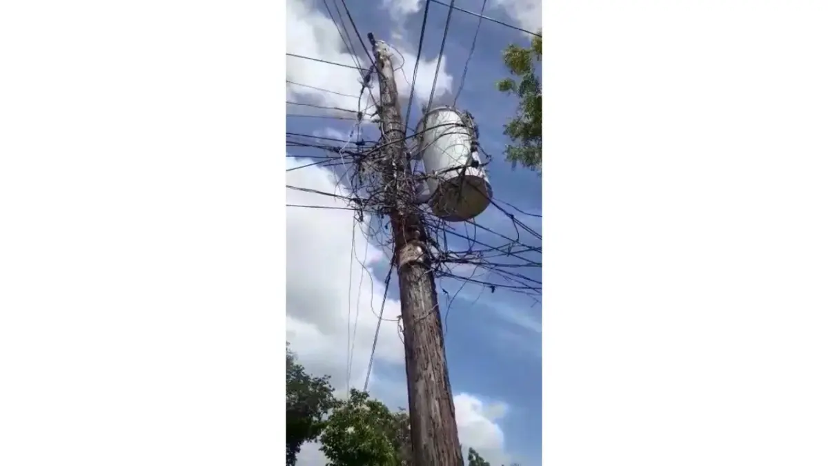 Santo Domingo.- Moradores de la calle 6 en el sector Valiente de Santo Domingo Este, denunciaron que está por colapsar el poste eléctrico que genera luz para ese lugar.