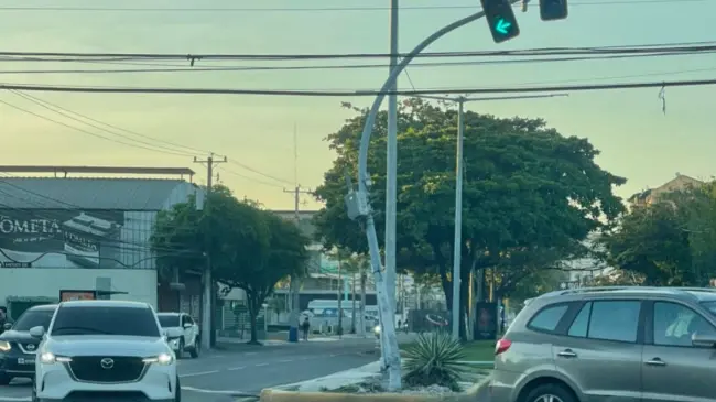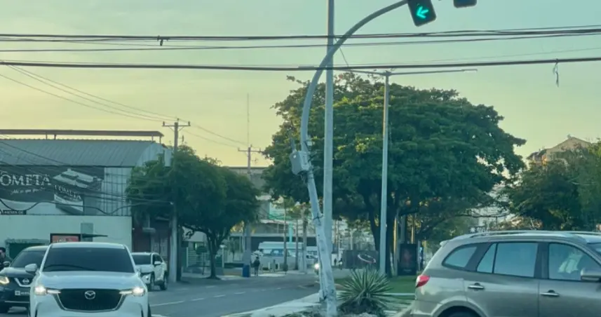 REDACCIÓN.– REDACCIÓN.- Conductores han denunciado que el semáforo ubicado avenida Núñez de Cáceres con Olof Palme está "casi cayéndose", lo que genera preocupación para quienes transitan por la vía regularmente. que presenta una evidente inclinación y aparenta estar en riesgo de caer.