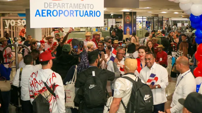 A ritmo del ballet folklórico del Ministerio de Turismo, bailes, aplausos y el ondeo de la enseña tricolor, fueron las primeras impresiones recibidas por los dominicanos a su paso por la rampa de la terminal A, donde en forma organizada un equipo de colaboradores los dirigía a los trámites correspondientes de migración.