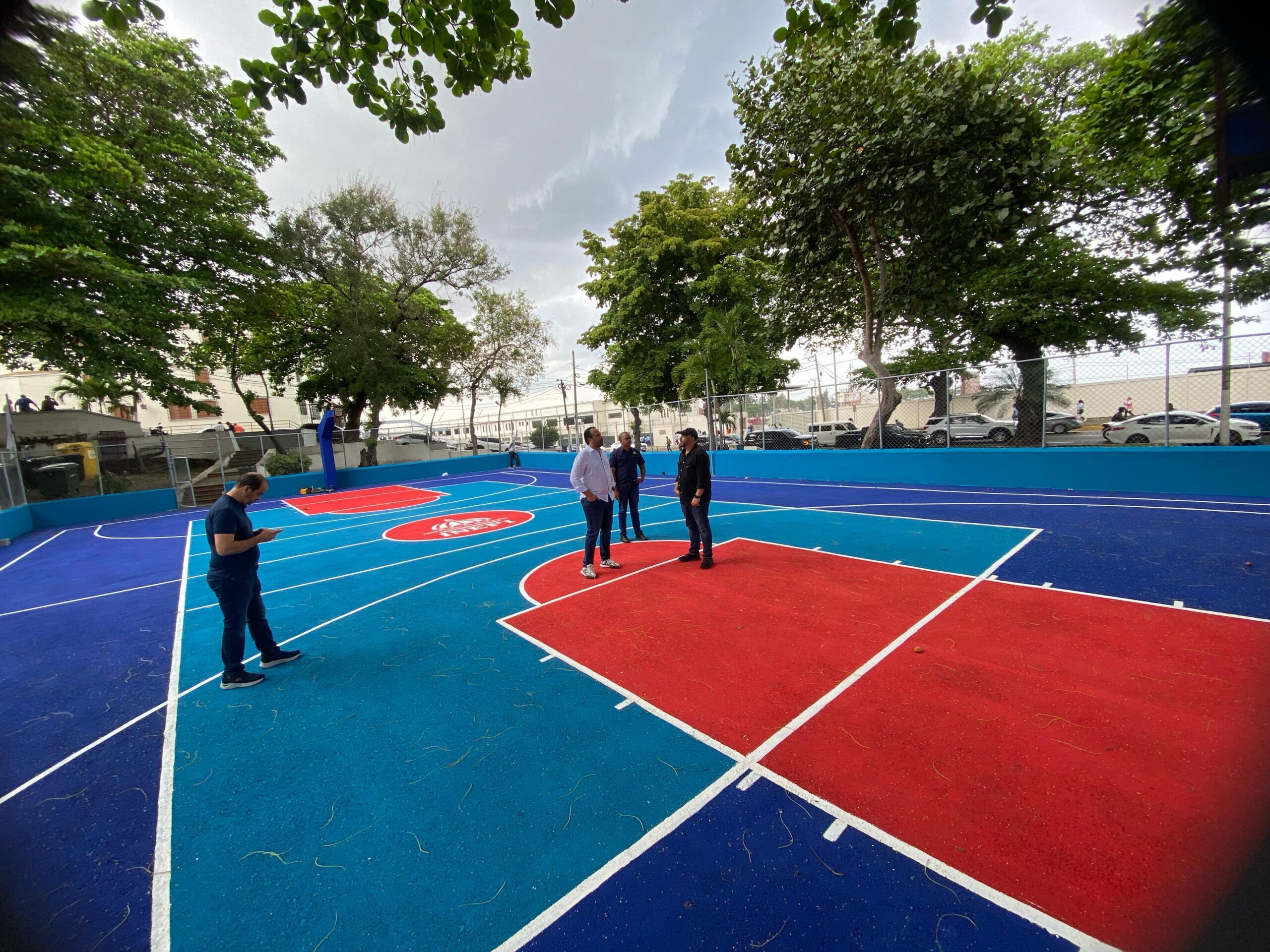 La renovación de esta cancha emblemática, situada en una de las zonas históricas más importantes de la capital, incluyó la reparación del suelo, que se encontraba deteriorado, la instalación de tableros de fibra de vidrio, iluminación mejorada y una pintura completamente nueva que resalta su identidad deportiva. Además, como parte del compromiso con la juventud y la recreación urbana, también fue remozada la pista de skateboard y patinaje del parque.