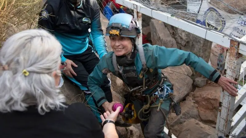 Las imágenes de TVE la mostraban saliendo de la cueva sonriente antes de abrazar a su equipo. Poco después, dijo que su experiencia ha sido "excelente" e "insuperable".