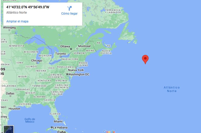El transatlántico se encuentra a unos 600 kilómetros de la costa de Newfoundland, en Canadá, a una profundidad de 3,800 metros bajo la superficie marina.