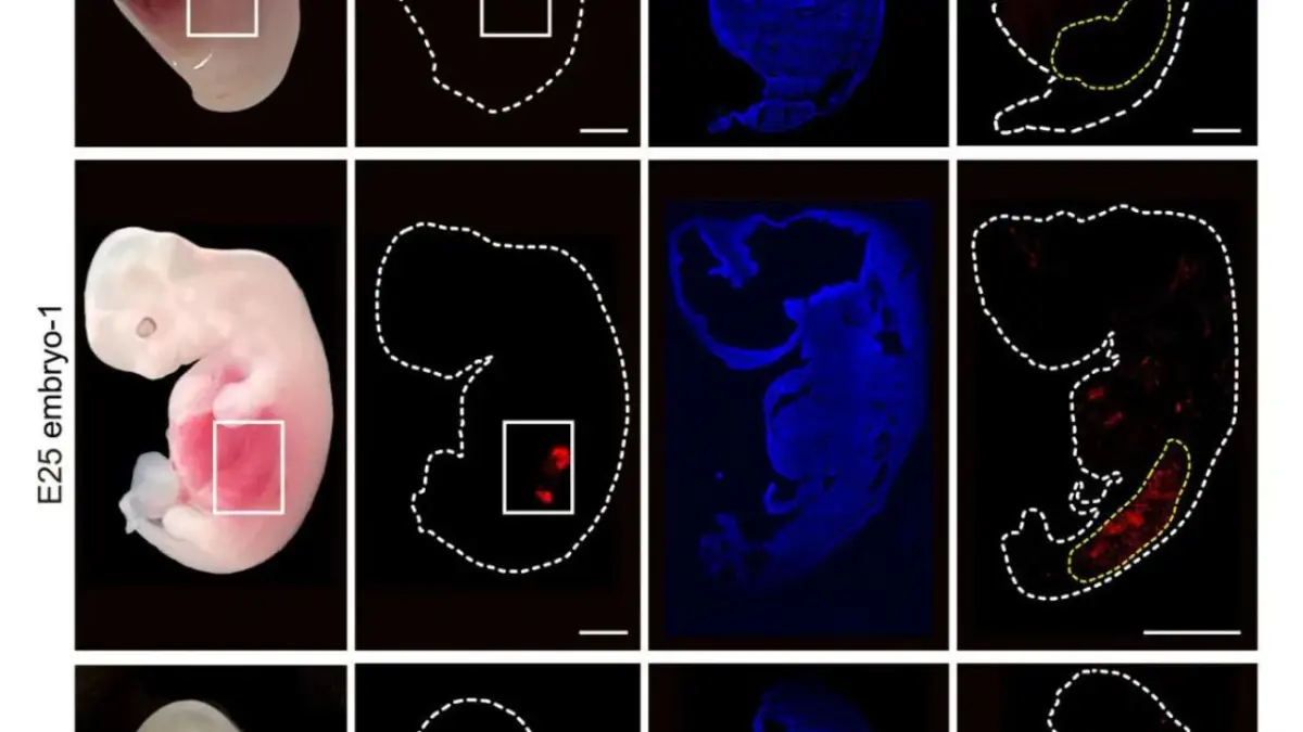 Se analizaron cinco embriones quiméricos (dos de 25 días de implantación y tres de 28 días) en los que los riñones humanizados eran “estructuralmente normales para su fase de desarrollo y estaban compuestos por un 50-60 % de células humanas”, agrega la nota.
