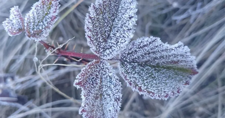 Descenso térmico en Valle Nuevo genera escarcha en hojas de mora silvestre