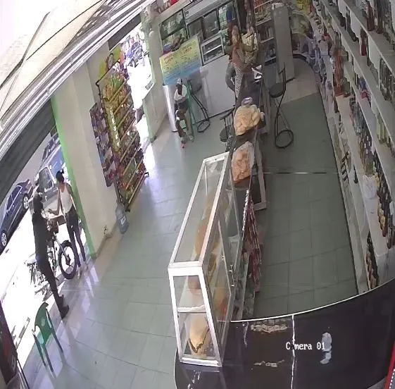 En el video se puede ver como el presunto delincuente le arrancó una cadena y la cartera a la mujer mientras iba entrando al colmado, todo esto en presencia de los que se encontraban en el lugar.