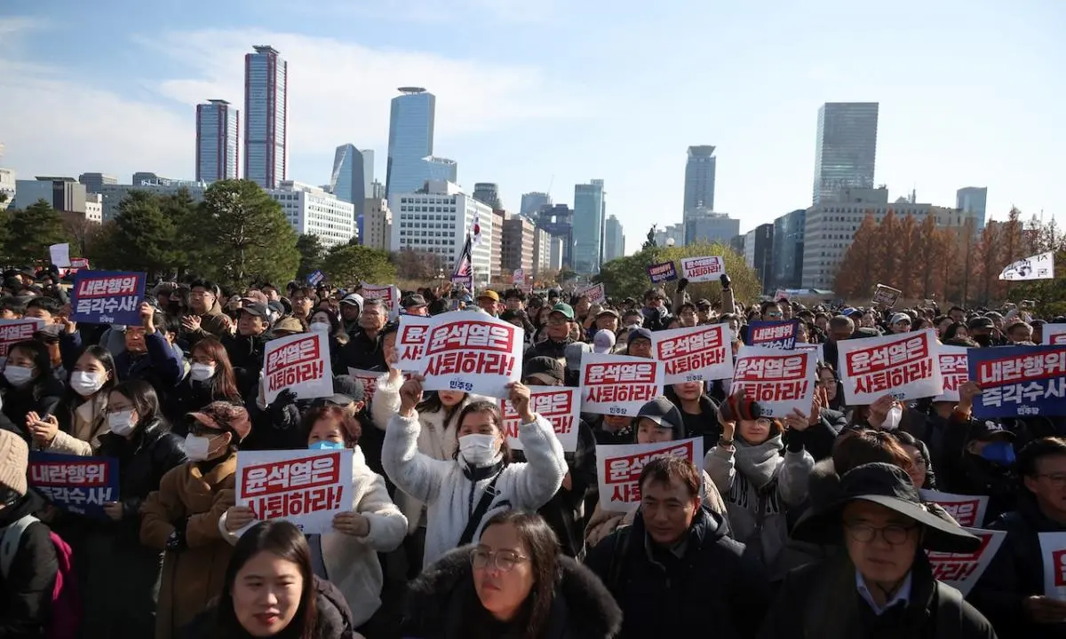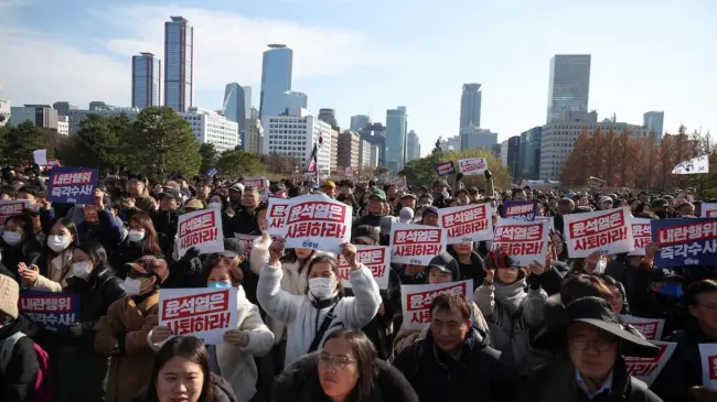 Seúl.– Seúl.- La decepción quedó este sábado muy patente en los miles de personas que pidieron ante el Parlamento surcoreano la destitución del presidente, Yoon Suk-yeol, después de que la moción para inhabilitarlo fracasara por el boicot del partido gobernante.