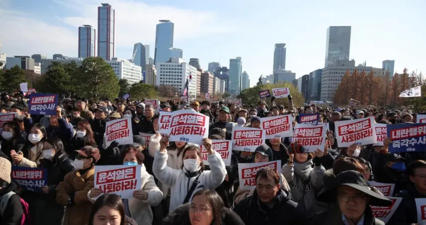 En torno a unas 159.000 personas se dieron cita hoy al grito "Destituyan al presidente" y durante horas y con temperaturas en torno a los cero grados centígrados clamaron contra el mandatario, que el pasado martes declaró por sorpresa la ley marcial argumentando que la oposición estaba actuando un ente pronorcoreano que estaba tratando de socavar al Estado.