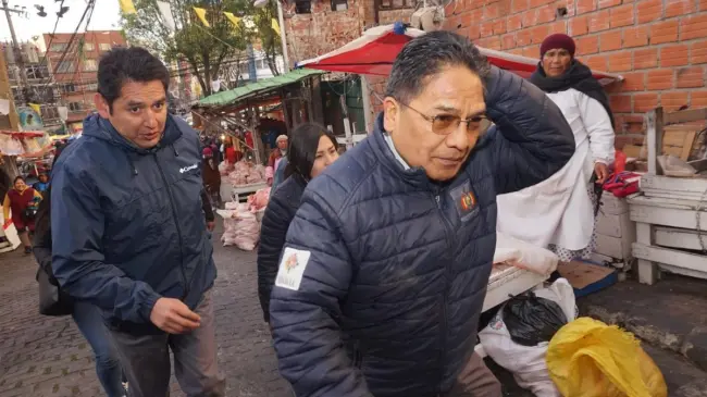 En La Paz, el viceministro Jorge Silva fue atacado mientras supervisaba precios de pollo, por lo que tuvo que retirarse custodiado tras la falta de coordinación en la entrega de alimentos.