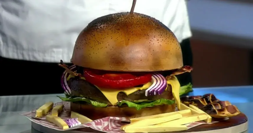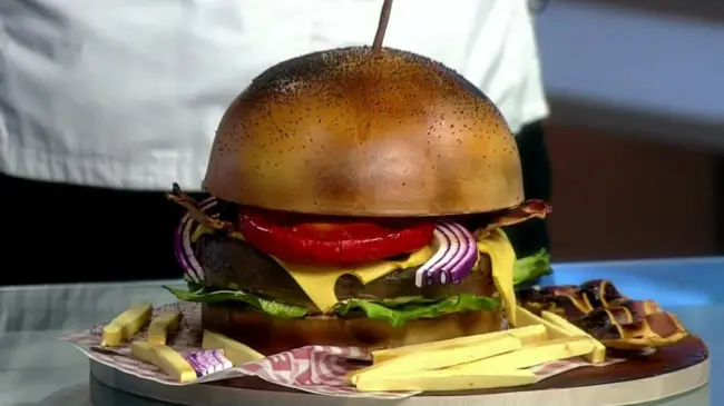 SANTO DOMINGO.- Todo el esplendor de una super hamburguesa pero con la explosión de sabor y dulzura de un postre, fue la obra de arte presentada por la chef Lili, quien una vez más demuestra su destreza en la repostería.