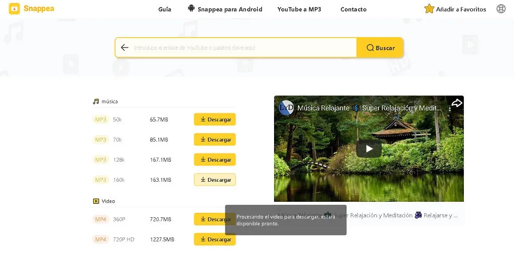 Por otro lado, te ofrece dos maneras transformar los videos de YouTube. El primero es copiando el link exacto que quieres convertir a MP3, mientras que, el segundo es a través del buscador incorporado en Snappea. Este último te brinda coincidencias increíbles, facilitándote hallar el contenido que deseas con solo una palabra clave o título.