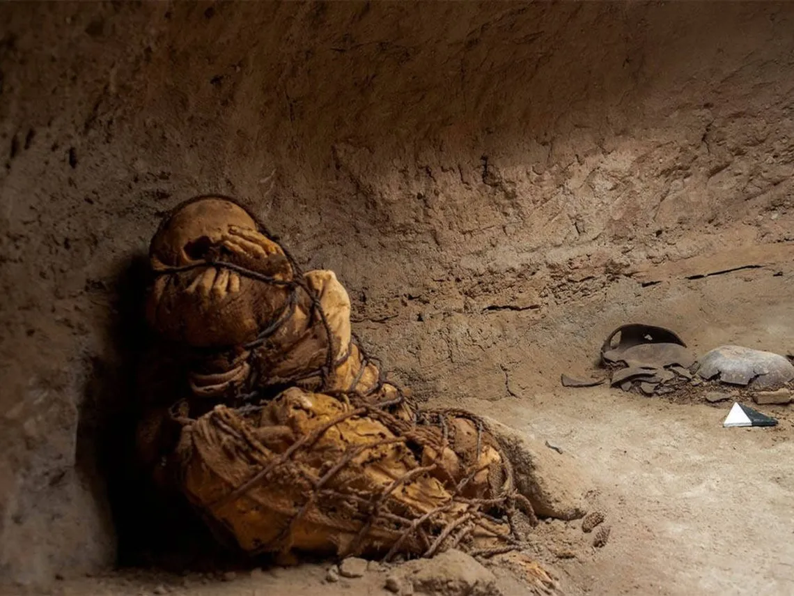 Descubren una momia de 1,200 años de un joven atado con una cuerda