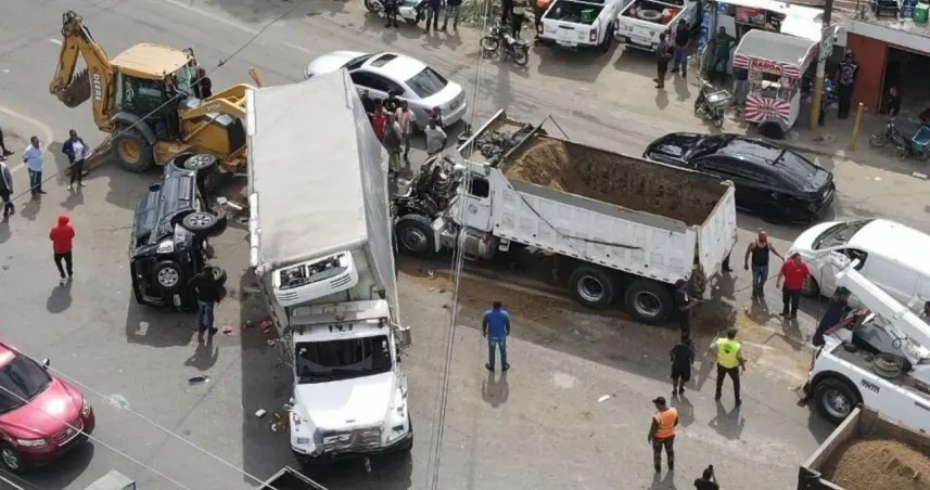 REDACCIÓN.– Redacción.- Quedó captado en vídeo el momento de impacto entre dos camiones en accidente reportado ayer martes en la autopista Joaquín Balaguer próximo a la Circunvalación de Santiago donde se reportaron al menos 15 heridos.