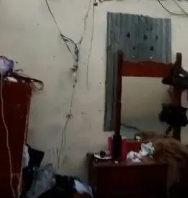 Los vientos provocaban un ruido tan fuerte que asustaba, mientras las tres personas que en estas imágenes se observan, se arrinconaron en una esquina de la destruida vivienda, buscando un lugar para protegerse, pero que no encontraron.