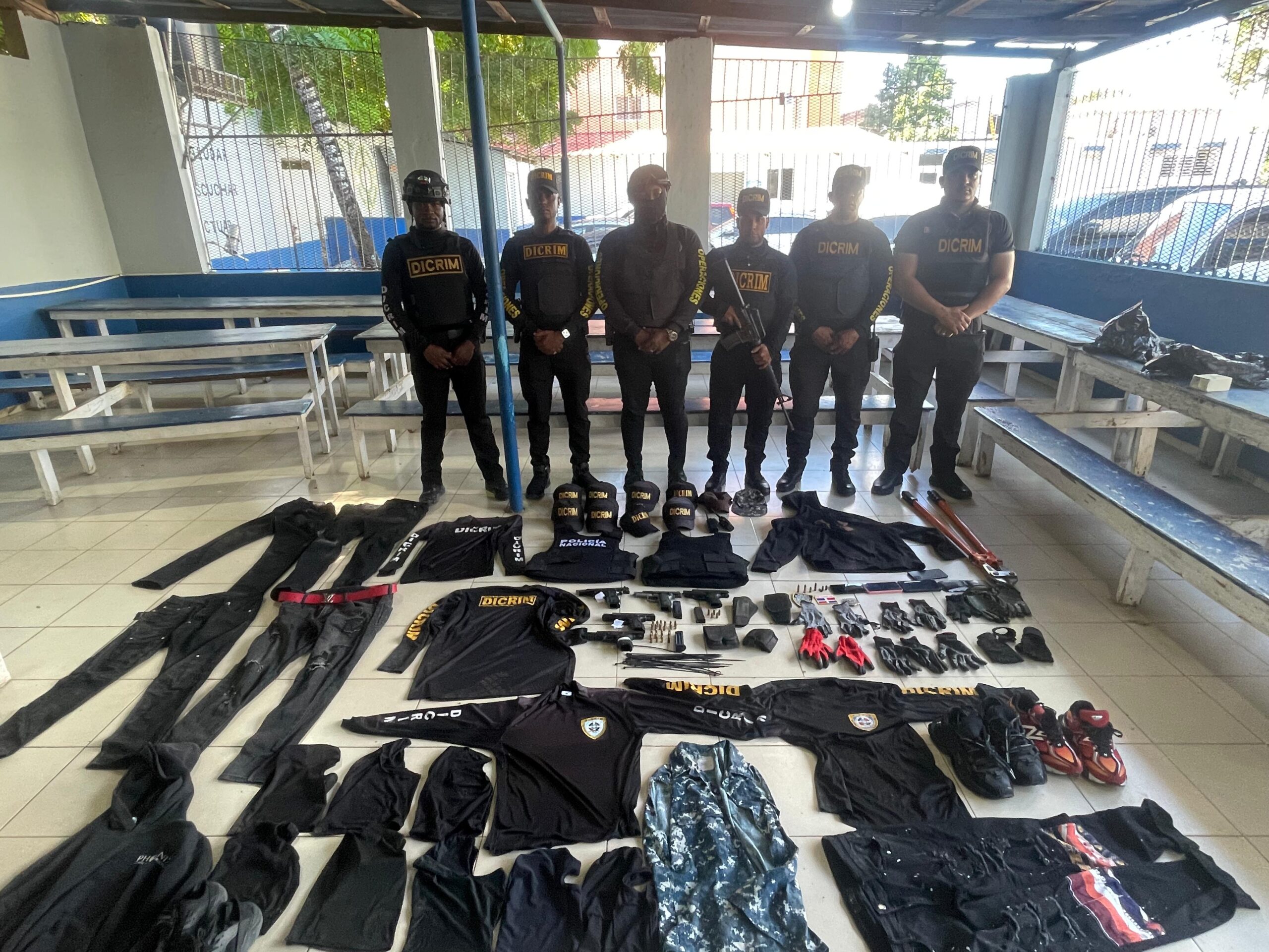 Asimismo, les fueron ocupadas cinco armas de fuego ilegales, pertrechos y vestimentas policiales y del Dicrim, chalecos antibalas, radios de comunicación, celulares, entres otros.
