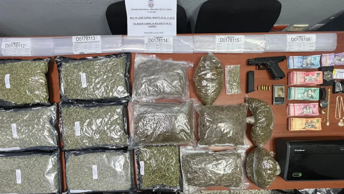 Santo Domingo.– SANTO DOMINGO.- La Dirección Nacional de Control de Drogas (DNCD) informó que desarticularon una red de microtráfico en Santiago, apresaron a dos hombres e incautaron más de 12, 000 gramos presumiblemente de marihuana, dinero en efectivo, prendas, una pistola y dos vehículos.