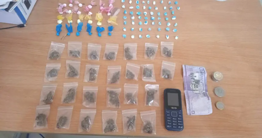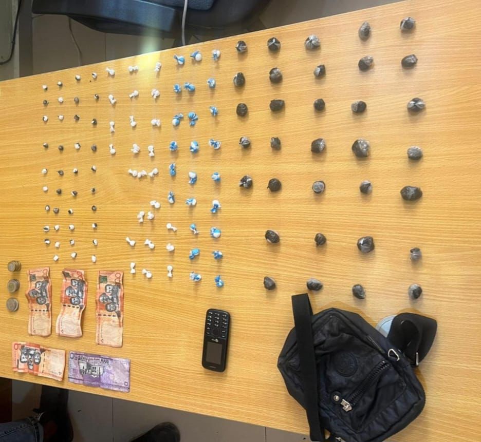 En el lugar, las autoridades incautaron 49 porciones de posible cocaína, 33 de probable marihuana y 37 bolsitas de un material rocoso parecido al crack.