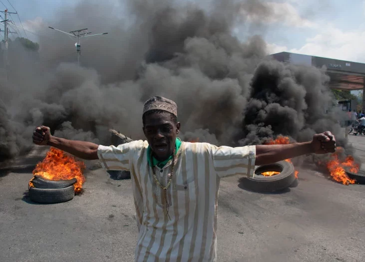 Puerto Príncipe -.– Puerto Príncipe. - Manifestantes desplazados lanzaron piedras y levantaron barricadas en llamas en áreas cercanas a la capital de Haití, para presionar a las autoridades a actuar contra las bandas armadas para poder regresar a sus casas.