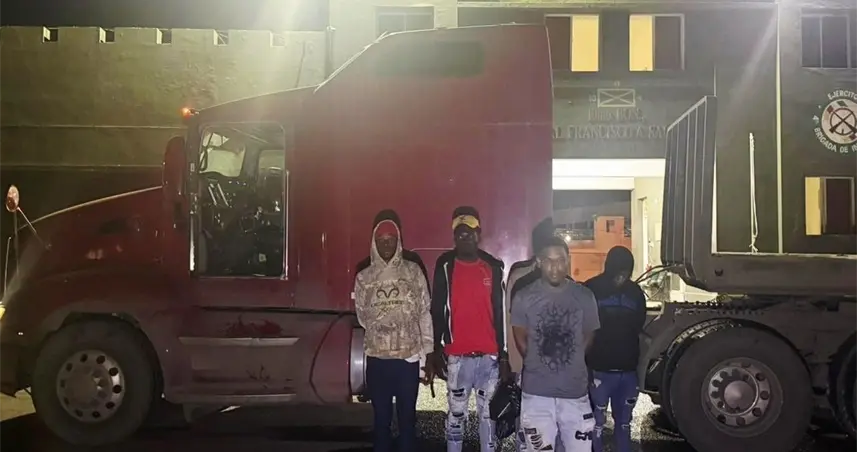 Durante la inspección vehicular, fueron encontrados cuatro nacionales haitianos, todos de sexo masculino y con estatus migratorio irregular, en la parte trasera del cabezote de la patana.