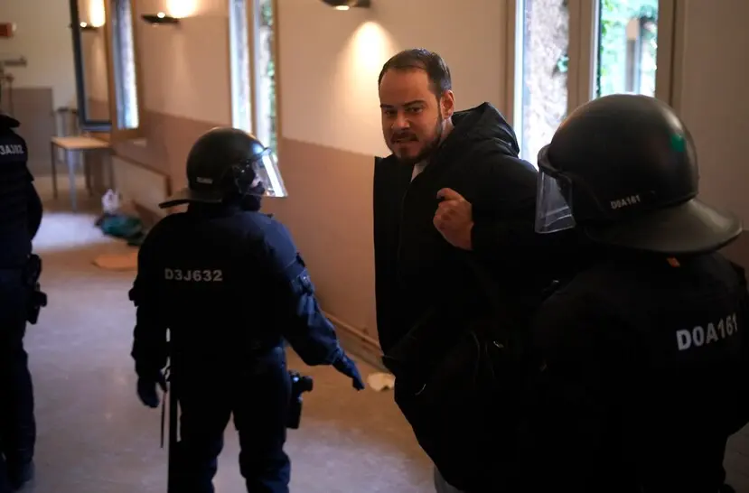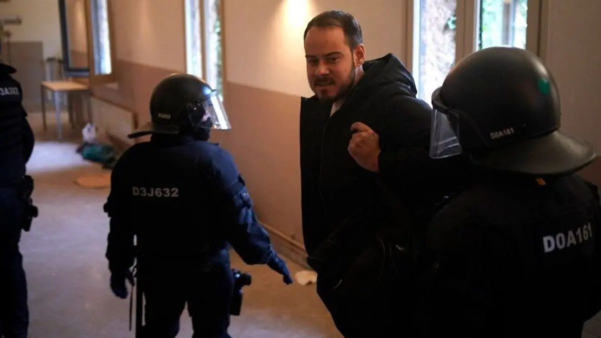 La Policía pudo sortear las barricadas que habían situado en las entradas del edificio el medio centenar de activistas encerrados con Hasel, que fueron arrinconados por los agentes para proceder a la detención del cantante.