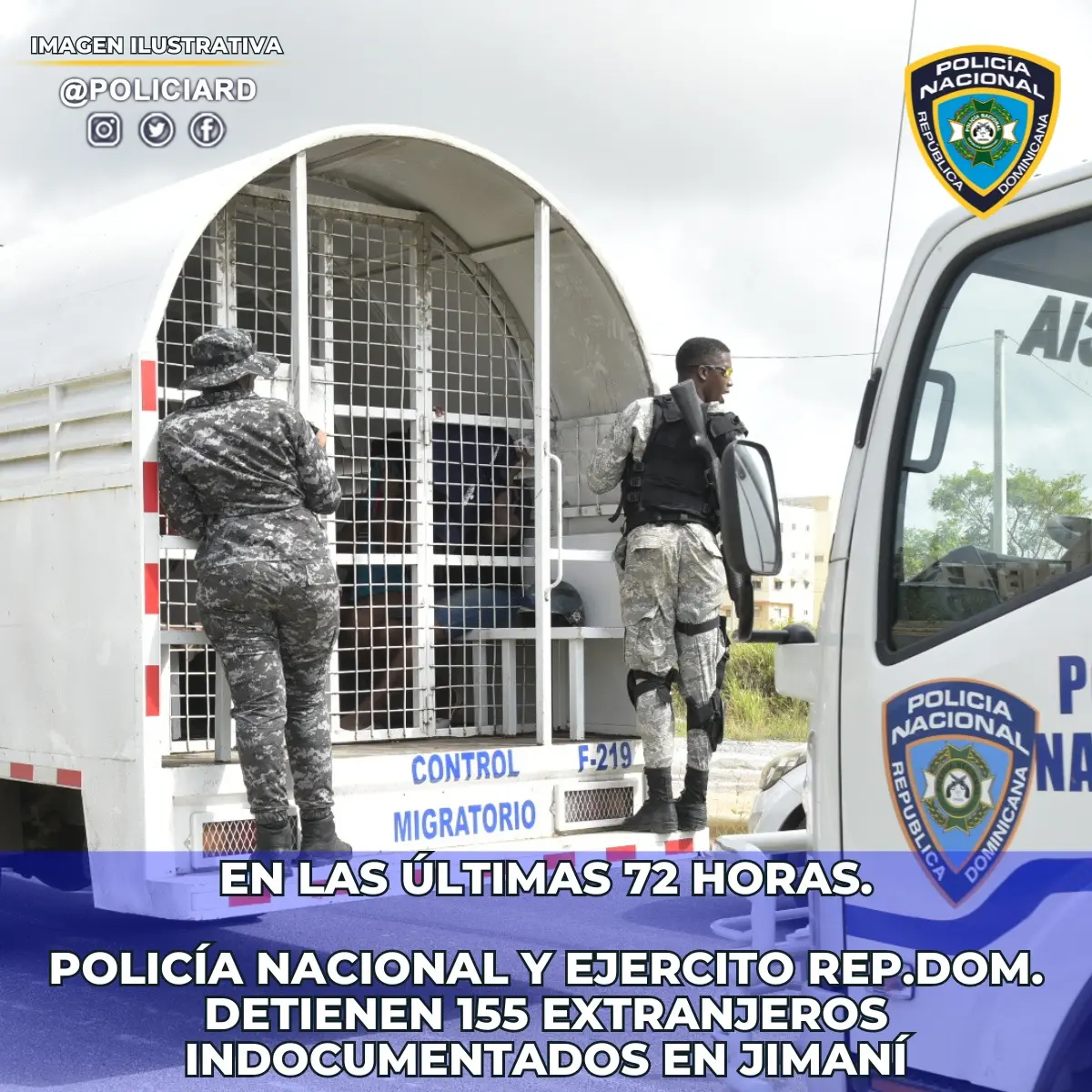 Santo Domingo.– SANTO DOMINGO.- Miembros de la Policía Nacional, en compañía del Ejército de República Dominicana (ERD), apresaron en la provincia Independencia, en las últimas 72 horas, a 155 nacionales haitianos que residían con el estatus migratorio irregular.