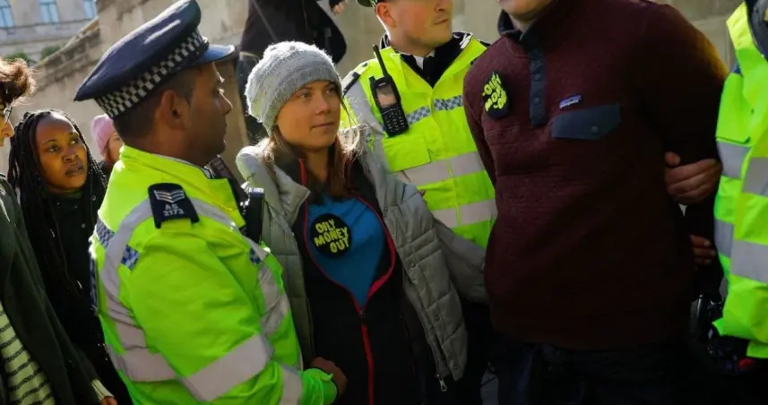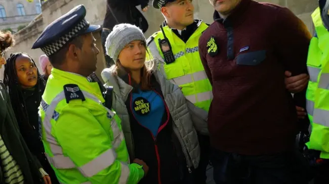 La organización Fossil Free London (Londres sin combustibles fósiles), que convocó la manifestación junto al hotel InterContinental de Park Lane, al lado del céntrico parque de Hyde Park, denunció el arresto en su cuenta de X (antes Twitter): "Greta Thunberg acaba de ser detenida".