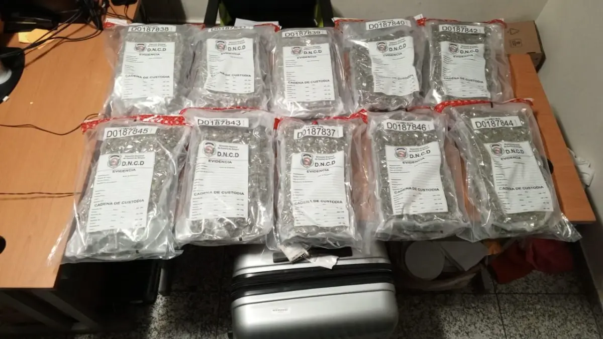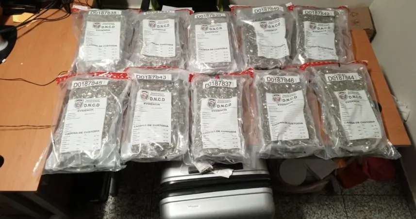 La Dirección Nacional de Control de Drogas (DNCD) y miembros del Cuerpo Especializado de Seguridad Aeroportuaria, incautaron 40 paquetes de marihuana los cuales se encontraban en dos maletas distribuidos con un peso preliminar de 45 libras.