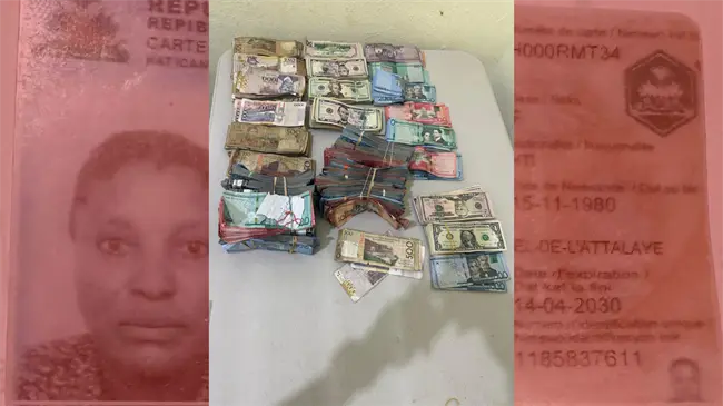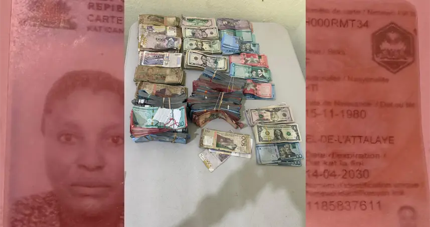 Durante la inspección, las autoridades hallaron en poder de la extranjera un total de RD$3,524,250.00 (tres millones quinientos veinticuatro mil doscientos cincuenta pesos dominicanos), US$14,250.00 (catorce mil doscientos cincuenta dólares estadounidenses) y G 231,250.00 (doscientos treinta y un mil doscientos cincuenta gourdes haitianos).