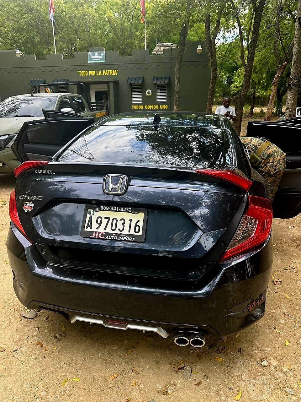 Sin embargo, nuevamente aceleró el vehículo marca Honda, modelo Civic, color negro, placa A970316, internándose en las calles del Distrito Municipal de Matayaya, donde descargó en una casa la mercancía de contrabando que llevaba, la cual fue entregada voluntariamente por los propietarios de la vivienda resultando ser: 4 cajas de cigarrillos marca Point, con 200 paquetes, equivalentes a 20,000 unidades.