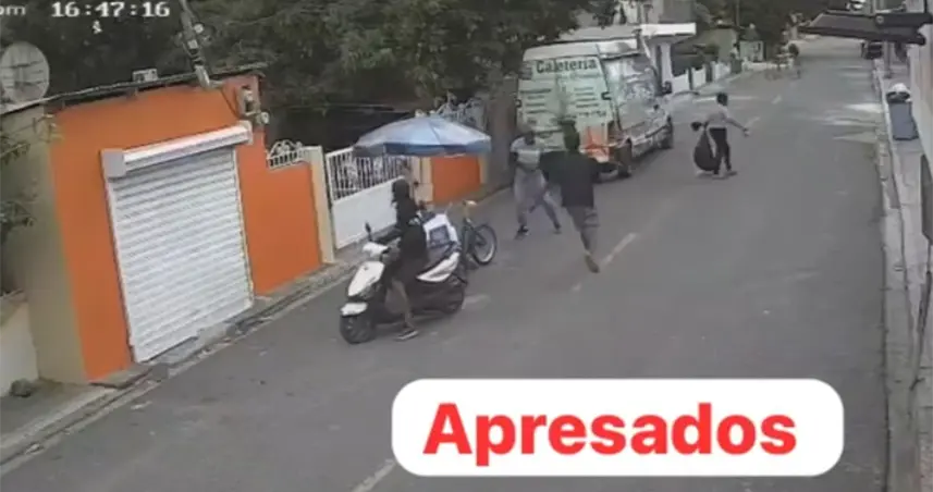 Santo Domingo.– Agentes de la Policía Nacional apresaron a dos hombres señalados como presuntos responsables de asaltar a un vendedor de helados en la vía pública, hecho que fue captado por cámaras de vigilancia y difundido en redes sociales.