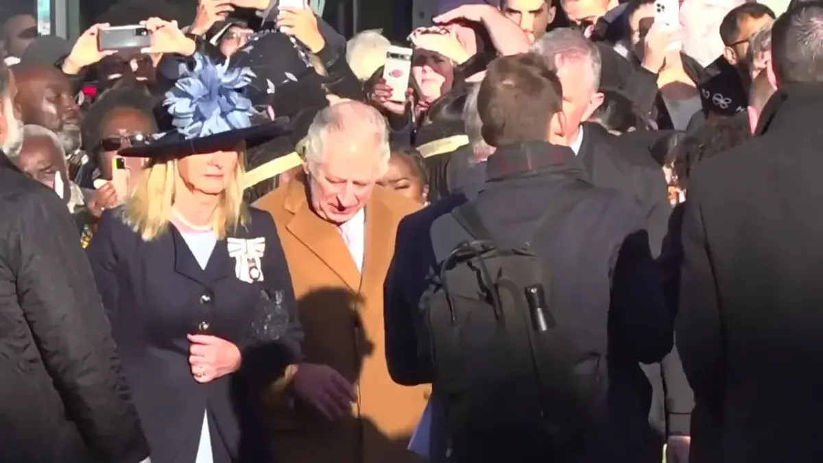 Carlos III hablaba con gente frente al ayuntamiento de Luton, 46 kilómetros (30 millas) al norte de Londres, cuando aparentemente le arrojaron el huevo. Su personal de seguridad lo trasladó a otra parte y el monarca siguió estrechando manos y conversando.