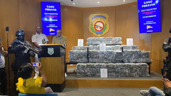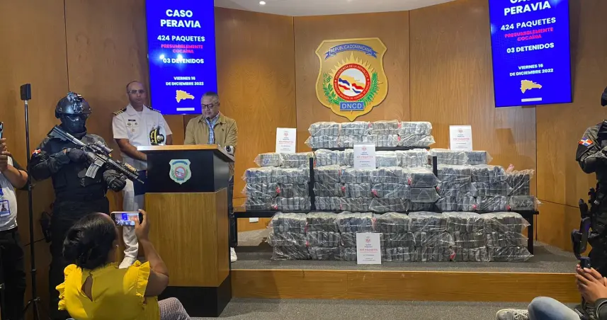 SANTO DOMINGO.- la Dirección Nacional de Control de Drogas (DNCD), informó que fue detenida una lancha con 424 paquetes de presunta cocaína frente a las costas de la provincia Peravia.