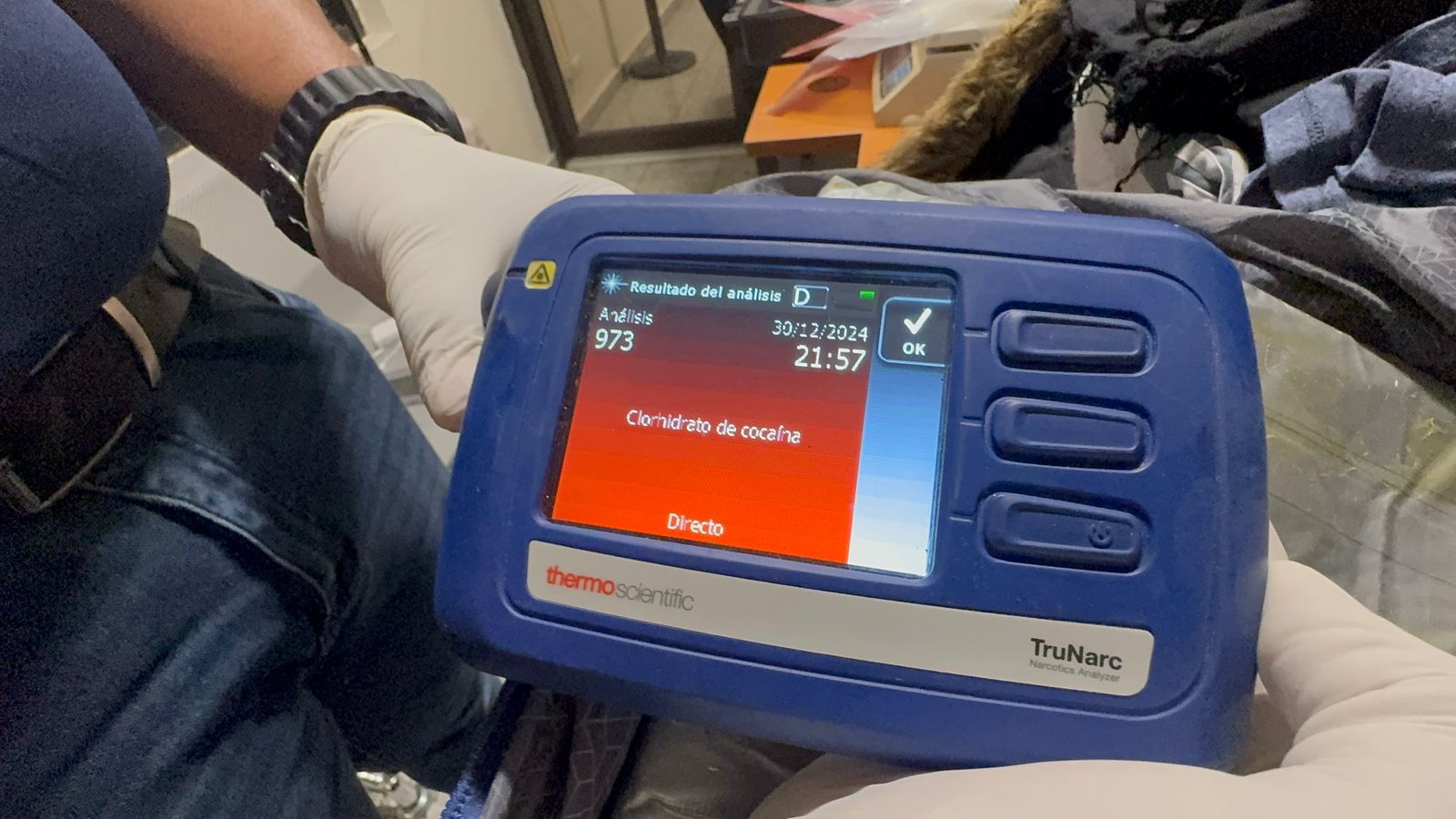 Los agentes de la Dirección Nacional de Control de Drogas (DNCD) y miembros del Cuerpo Especializado de Seguridad Aeroportuaria (CESAC) coordinados por el Ministerio Público, desarrollaban labores de vigilancia e inspección en una de las áreas de salida de la terminal, cuando a través de una de las máquinas de rayos X, observaron imágenes sospechosas en varios equipajes.