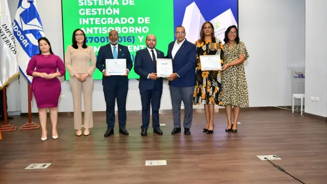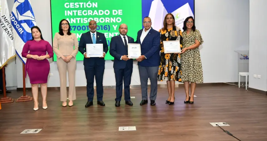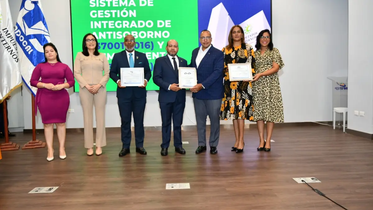 Santo Domingo.– SANTO DOMINGO.- La Dirección General de Impuestos Internos (DGII) recibió las certificaciones ISO de Antisoborno (37001:2016) y Cumplimiento (37301:2021)), las cuales le permitirán a la institución detectar y gestionar riesgos de posibles prácticas de soborno y fortalecer el cumplimiento normativo de la institución.