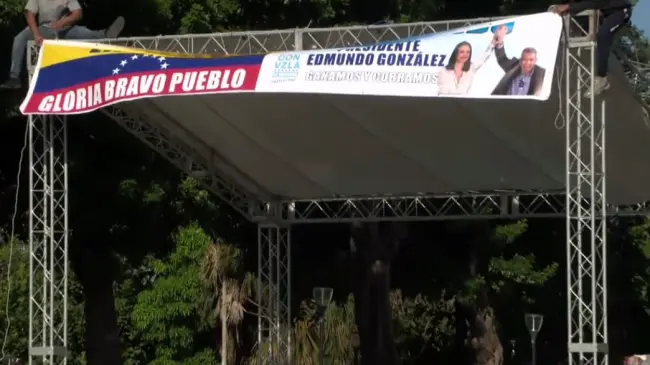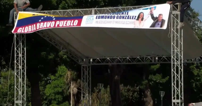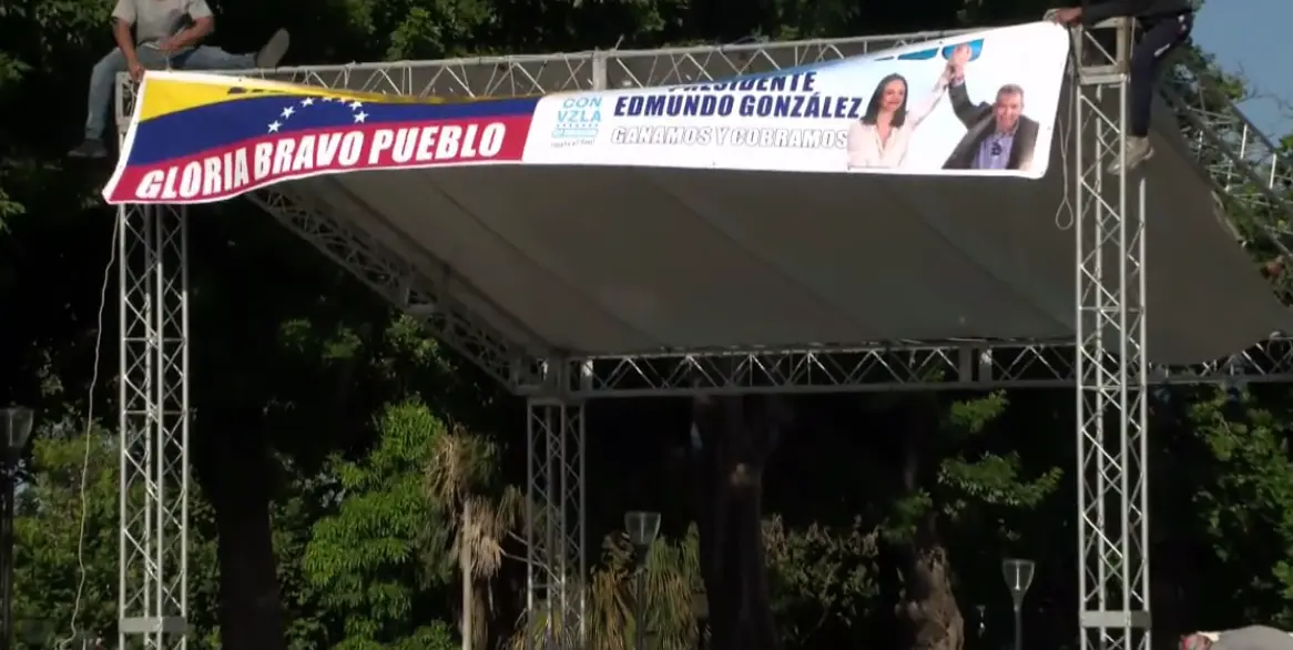 La instalación de una tarima y vallas alusivas a su candidatura marca el inicio de lo que los organizadores han calificado como un evento histórico para la diáspora venezolana en República Dominicana.