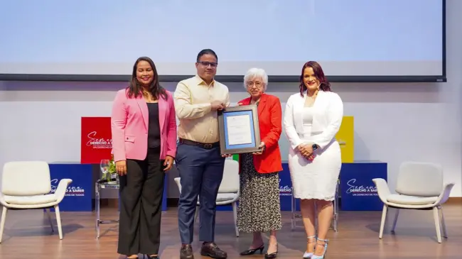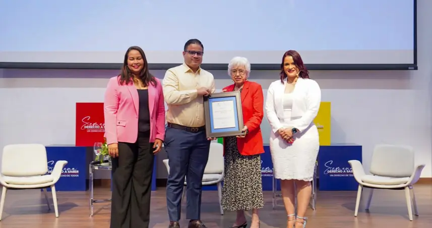 El reconocimiento fue entregado por la Dra. Milagros Ortiz Bosch, directora de la DIGEIG, al director general de INDOCAL, Néstor Matos, durante la celebración de la Semana del Derecho al Saber, un evento anual que promueve la transparencia y el acceso a la información pública en el país.