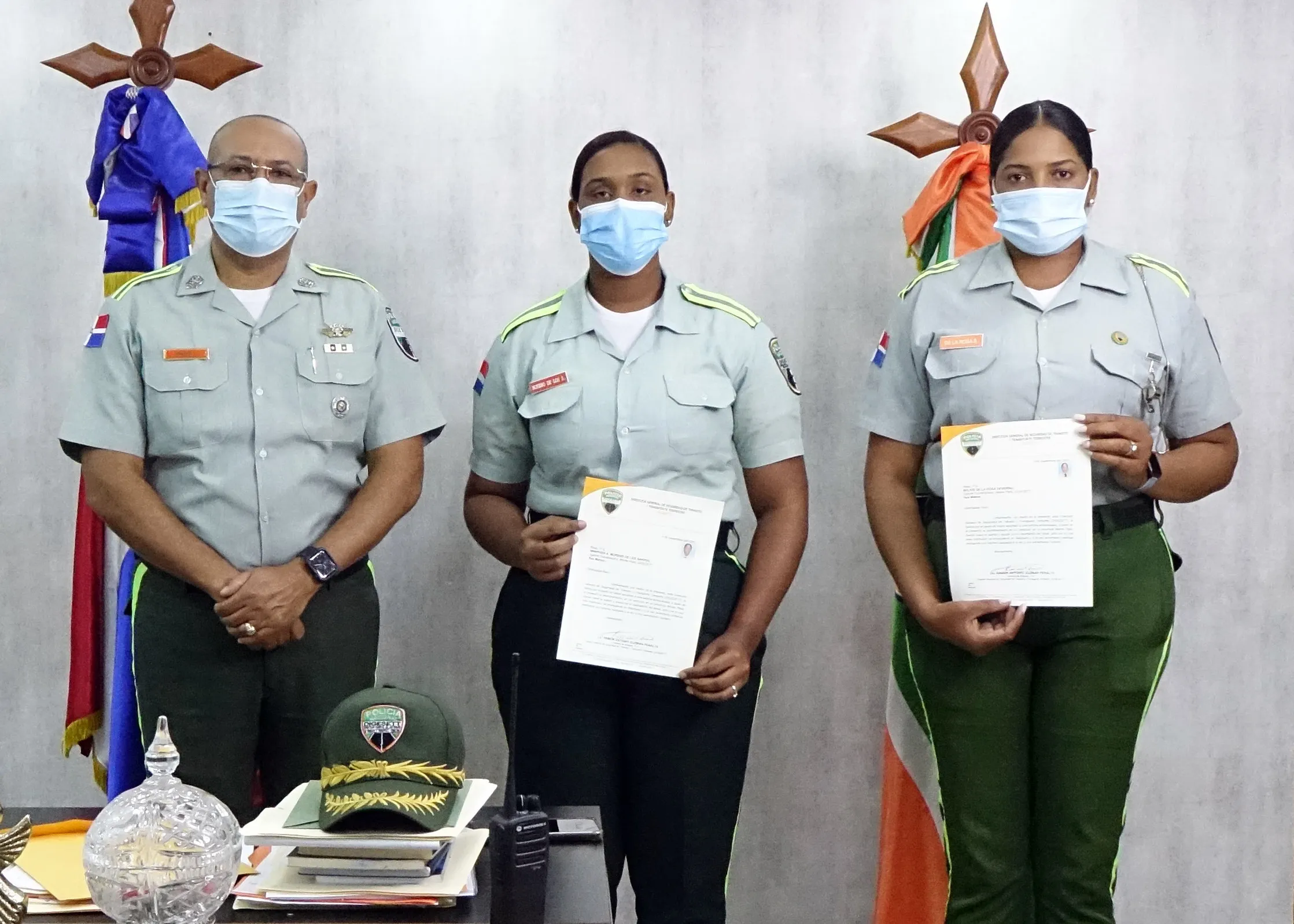 El general de brigada Ramón Antonio Guzmán Peralta, P.N., director de la DIGESETT, encabezó un acto en la sede central de la entidad, donde entregó una Carta de Encomio, en la que se declaran a las rasos de la Policía Belkis de la Rosa Severino y Winipher A. Moreno de los Santos, heroínas y un orgullo para la DIGESETT, por su arrojo y valentía de socorrer con eficiencia a una parturienta, que desesperadamente gritaba que se le ayudaran a salvar la vida del niño.
